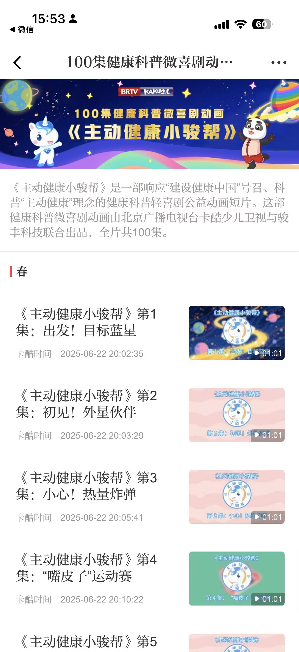 《主动健康小骏帮》春季篇于4月25日至6月13日、夏季篇于6月14日至8月2日在卡酷少儿卫视播出,并在北京时间、抖音、微博等新媒体平台持续更新,覆盖全网5030万粉丝。电视大屏首重播累计触达受众超8500万,在卡酷少儿卫视黄金段首播4+收视率位列所有省级少儿卫视第一。