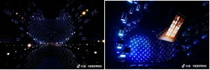 1)舞美创意构思:舞美设计以“星空万花筒”为主题,寓意着透过抖音这个奇妙万花筒看到生活里的绚丽多彩。利用黑科技打造星空万花筒,古今联动打造潮流国风美学盛宴。结合裸眼3D视觉设计与AR技术,突破空间限制,呈现震撼画面。