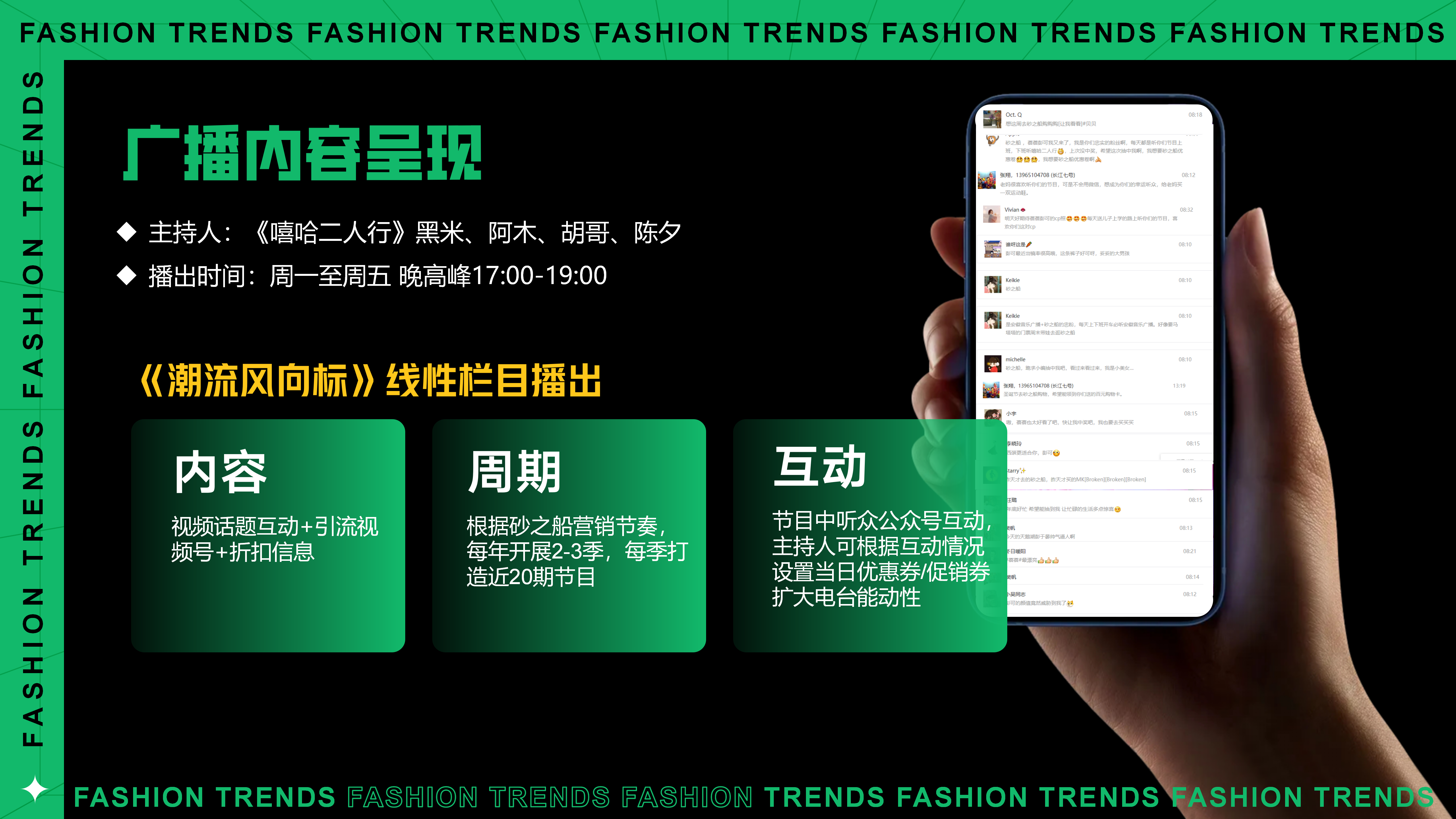 活动从从时尚穿搭的竖屏海报到微短剧形式的竖屏视频,深度开辟广播与品牌间的无限可能。
