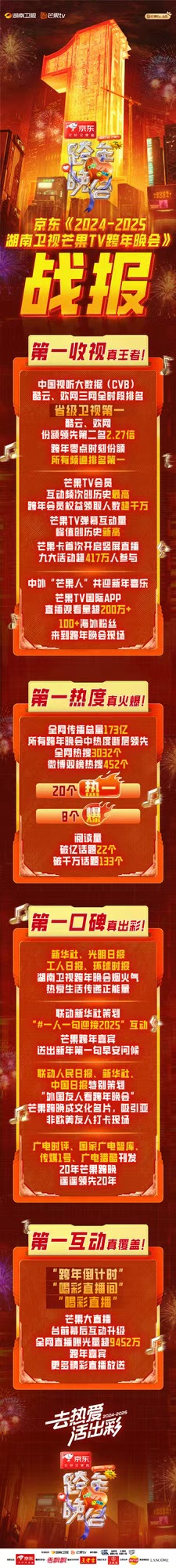 以跨年晚会、618晚会为核心曝光阵地,联动芒果TV、京东APP、社媒等多渠道扩散。深度优化大小屏联动体验,一方面通过晚会嘉宾做客直播间带动观众的购买力,另一方面技术端打通京东平台与播出端,将节目互动与京东活动紧密连接,实现实时跳转下单,确保用户体验流畅,让消费变成即时从大屏到小屏,从线上到线下可感知的体验,实现从内容曝光到购物行为的一站式转化。
