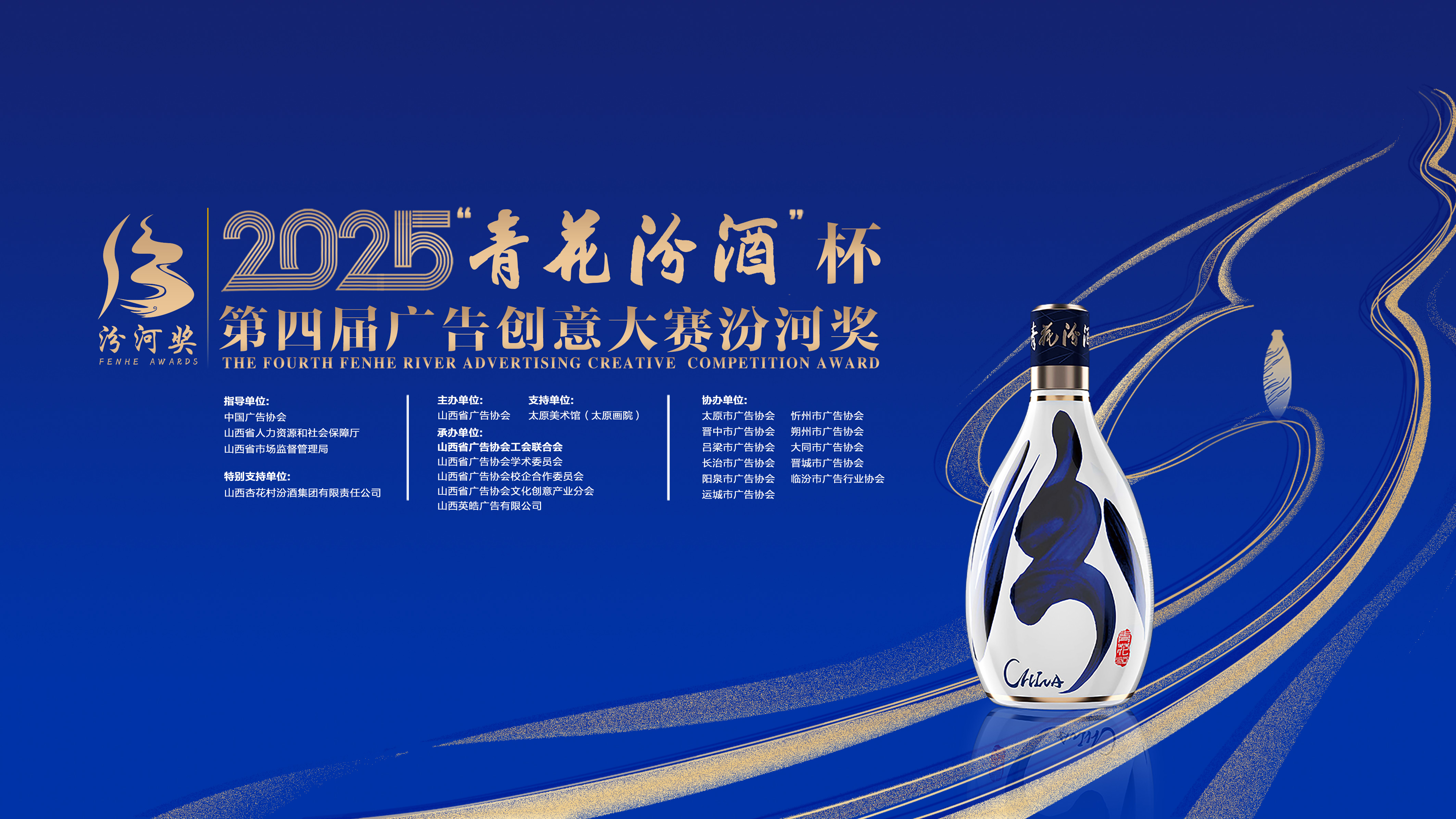 2025“青花汾酒”杯第四届广告创意大赛汾河奖,以文化为核心,深挖青花汾酒千年传承与汾河文化,让作品兼具文化底蕴与时代精神;通过广泛联合全国知名艺术院校,挖掘年轻创意人才,借助他们的多元视角,为青花汾酒品牌注入新活力;以大赛为桥梁,将广告创意与品牌传播深度融合,通过优秀作品的传播,实现青花汾酒品牌形象提升与市场拓展。