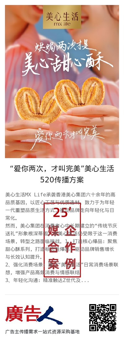 基于美心生活品牌对极致品质的坚守,520传播以“爱你两次,才叫完美”为核心主张,巧妙将产品“双重烘焙工艺”升华为情感与品质的双重承诺。