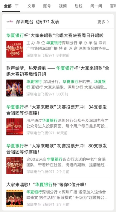 在多矩阵的宣传形式及活动执行阶段,合唱大赛在市民当中反响热烈,华夏银行全市34家营业网点共吸引参赛合唱团体80支,近4000名中老年人群参与当中。华夏银行以“金融创新”+“文化养老”的活动形式,进一步推动金融服务走近社区、走入民众,为深圳的中老年群体营造更加专业、安全的养老金融综合服务。