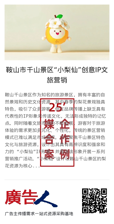鞍山千山景区作为知名的旅游景区,拥有丰富的自然景观和历史文化资源,其中春季的梨花景观独具特色,吸引了众多游客。但在品牌传播上缺乏具有代表性的IP形象来传递文化,无法形成独特的记忆点。同时随着文旅市场的不断发展,游客对于旅游体验的需求更加多元化、个性化,传统的景区营销模式已难以满足市场需求。